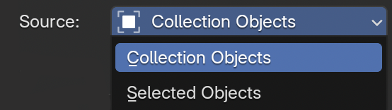 Collection Objects: Export the Collection Objects, select Collection in Export Collection Selection Menu.Selected Objects: Exports the selected objects.