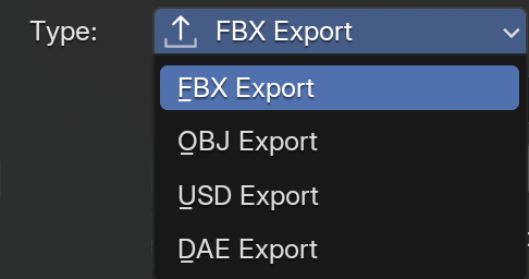 FBX Export: Makes the final export file as 'My_object.fbx'OBJ Export: Makes the final export file as 'My_object.obj'USDz Export: Makes the final export file as 'My_object.usd*'DAE Export: Makes the final export file as 'My_object.dae'