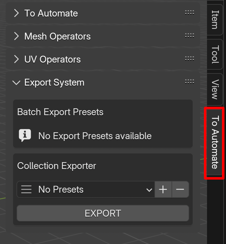 The ToAutomate UI is located in the Properties(Press N) Panel of the 3D-View.